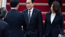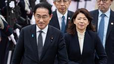 이동하는 기시다 후미오 일본 총리 부부