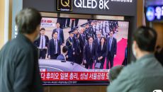 기시다 일본총리 방한 뉴스 바라보는 시민들