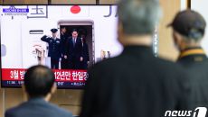 (서울=뉴스1) 이재명 기자 = 7일 오전 서울 용산구 서울역에서 시민들이 기시다 후미오 일본 총리가 서울공항에 도착하는 모습- 2023.05.07 12:20