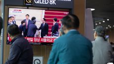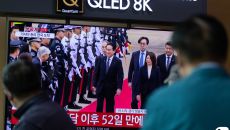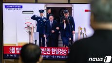 기시다 日총리 방한 중계 모습 바라보는 시민들