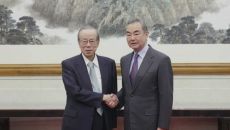 中왕이, 日 전 총리 만나 "일본이 평화적 발전 방향 견지할지 의문"