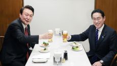 尹·기시다 2차서 맥주·소주로 ‘화합주’…김 여사는 화과자 친교행사