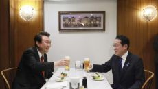 윤석열 대통령과 기시다 후미오 일본 총리가 지난 16일 양자회담 이후 가졌던 1~2만찬중 2차 만찬의 후일담이 공개됐다. 두- 2023.03.17 15:13