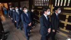 日의원 90여명 단체로 야스쿠니 참배…기시다는 공물만 봉납