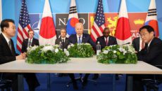 지난 6월29일 스페인 마드리드 이페마(IFEMA) 컨벤션센터에서 열린 한·미·일 정상회담에서 윤석열 대통령이 조 바이든 미국- 2022.09.22 01:47