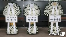 아베 신조 전 일본 총리 분향소에 놓인 조화들