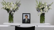 주한일본대사관 공보문화원에 놓인 아베 신조 전 총리 영정