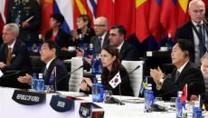한국 대통령 면전서 “방위력 강화”…기시다 발언 의미는