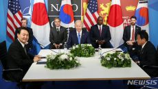나토 정상회의 전 한미일 3국 정상회담 尹대통령 "한미일 협력, 세계평화 중심축" 바이든 "한반도 비핵화 위해 3국 협력 필수- 2022.06.29 22:45