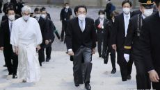 (서울=뉴스1) 박병진 기자 = 기시다 후미오 일본 총리가 4일 일본 보수의 성지로 추앙되는 곳인 이세(伊勢)신궁을 참배하는- 2022.01.04 10:09