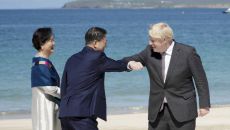 文 대통령, G7서 스가 총리에 먼저 다가가 “반갑다” 인사…日 매체 “정상회담 개최엔 신중”