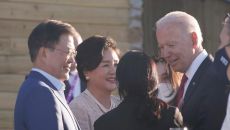 文, 스가 만나 “반갑다” 짧은 인사…바이든 “문대통령 와 모든게 잘될 것”
