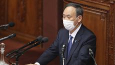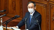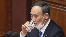 日 스가총리도 혹시? 의회 연설 중 쉰 소리에 콜록콜록