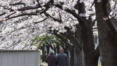 벚꽃놀이 서둘러 취소하는 日…뚝뚝 떨어지는 스가 지지율