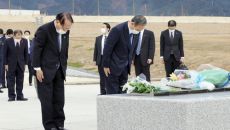 현장 찾은 스가, 오염수 처분결정 "언제까지나 미룰 순 없어"