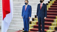 [서울=뉴시스]이재준 기자 = 베트남에 이어 인도네시아를 방문한 스가 요시히데(菅義偉) 일본 총리는 21일 역내 해양진출과 군- 2020.10.21 13:42