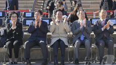 박수치는 김민석 총리·미즈시마 고이치 주한일본대사