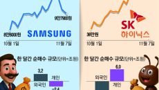엇갈린 반도체 대장주 투자 외국인들은 삼성전자 담고 개인, 한달새 하이닉스 6조 매수 단기 급등한 코스피가 조정받는 상황에서도- 2025.11.10 06:03