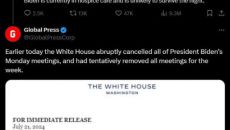 조 바이든 미국 대통령이 민주당 대선 후보에서 사퇴한 데 이어 위독설이 돌고 있다. 22일(현지시간) 글로벌 프레스는 엑스(X- 2024.07.23 16:16