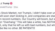 트럼프, 임기초 역성장에 '바이든 탓'···"인내하라"
