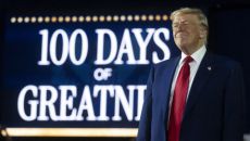 트럼프, 취임 100일 90분 연설… 바이든 17번 언급하며 맹비난