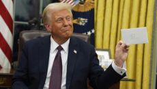[서울=뉴시스] 김난영 기자 = 도널드 트럼프 미국 대통령이 전임자인 조 바이든 전 대통령의 서한을 폭스뉴스 기자에게 줬다고- 2025.01.23 11:45