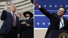 전 정부 비판하며 갈등 부각 순간 바이든 표정 굳어지기도 취임선서 땐 성경에 손 안 얹어 머스크 “트럼프 선택해 감사” 손 뻗- 2025.01.21 21:17