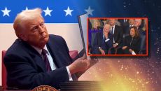 트럼프, 바이든 면전서 "4년간 나라 무너져"…얼굴 굳은 전임자