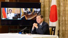 (서울=뉴스1) 권진영 기자 = 이시바 시게루 일본 총리가 13일, 미국·필리핀 정상과 화상 회담을 통해 조 바이든 미국 대통- 2025.01.13 15:30