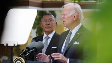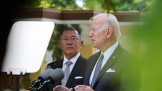 ▲ 조 바이든 전 미국 대통령이 지난 2022년 5월 방한 숙소인 서울 용산구 그랜드 하얏트 호텔에서 열린 정의선 현대차그룹- 2025.09.06 13:49