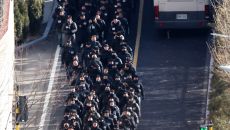 (서울=뉴스1) 오대일 기자 = 내란 우두머리 혐의로 체포된 윤석열 대통령을 태운 차량 행렬이 15일 오전 서울 용산구 한남동- 2025.01.15 12:28