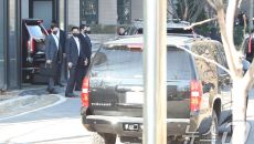 공수처 도착한 尹 탑승 차량과 경호차량들