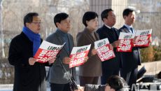 정의당과 녹색당, 노동당이 한덕수 대통령 권한대행이 윤석열 대통령의 내란죄 수사와 헌법재판소의 탄핵 심판을 방해하고 있다며 고- 2024.12.26 15:29