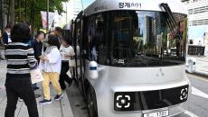 11개 버스정류장서 누구나 무료 탑승 "난코스 기술 고도화·노선 확대 기대" "자율주행을 시작합니다." 23일 서울 청계천변- 2025.09.23 16:57