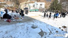 (양평=뉴스1) 황기선 기자 = 10일 오후 경기 양평 하이패밀리 안데르센 공원묘원에서 시민들이 양부모의 학대로 숨진 16개월- 2021.01.10 14:58