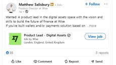 와이즈, ‘디지털 자산 책임자’ 채용 링크드인 공고에 100명 이상 몰려 중남미·아프리카 송금·결제 수요 높아 비자(Visa)- 2025.10.21 10:15