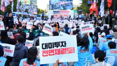 "대미투자 전면 재검토" 시민단체들 광화문광장서 농성