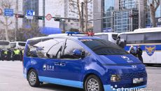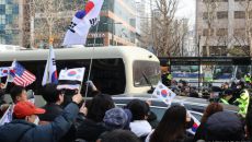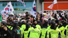 '윤석열 호송차' 등장에…지지자들 도로 난입하고, 경찰차 주먹으로 치고