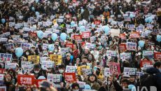 이어지는 윤석열 탄핵 촉구, 동십자각 앞에 모인 참가자들[뉴시스Pic]