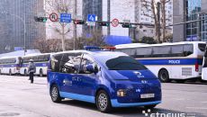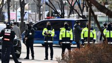아시아투데이 강다현 기자 = 경찰이 18일 윤석열 대통령에 대한 구속 전 피의자 심문(영장실질심사)이 열리는 서울서부지법 정문- 2025.01.18 10:02