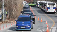 (의왕=뉴스1) 박세연 기자 = 내란 우두머리 혐의로 체포된 윤석열 대통령이 탑승한 차량 행렬이 18일 경기도 의왕시 서울구치- 2025.01.18 14:10