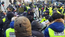 경찰, 윤석열 대통령 구속심사 앞두고 서부지법 막아선 지지자들 강제해산
