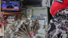 '윤석열 대통령 체포 관련 뉴스 시청하는 상인'