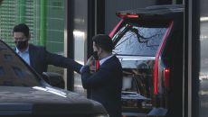 [과천=뉴스핌] 이호형 기자 = 내란 우두머리 등의 혐의로 체포된 윤석열 대통령을 태운 차량이 15일 어잔 경기도 정부과천청사- 2025.01.15 11:38