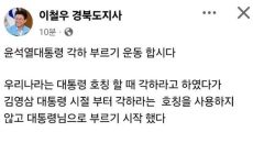 이철우 경북지사가 윤석열 대통령을 ‘각하’(閣下)라고 부르자는 주장을 자신의 페이스북에 올렸다가 논란이 일자 삭제했다. 이 지- 2025.03.12 11:53