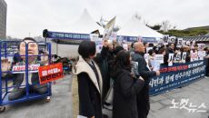 참여연대 등 시민사회단체원들이 12일 오전 서울 종로구 경복궁 서십자각 앞 단식농성장에서 내란수괴 윤석열 파면 촉구 참여연대- 2025.03.12 11:51