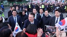 석방 후 지지자들과 악수하는 윤석열 대통령