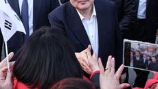 관저 앞에 모인 지지자들과 악수하는 윤석열 대통령