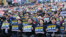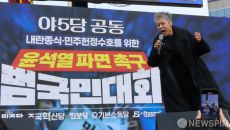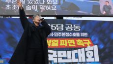 윤석열 파면 촉구 범국민대회에서 구호 외치는 5당 대표