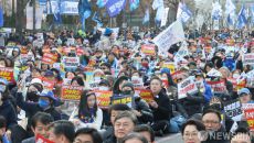 구호 외치는 윤석열 파면 촉구 범국민대회 참가자들